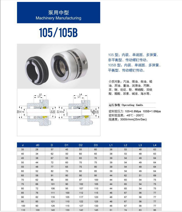 105型:内装,单端面 ,多弹簧,非平衡型,传动螺钉传动。